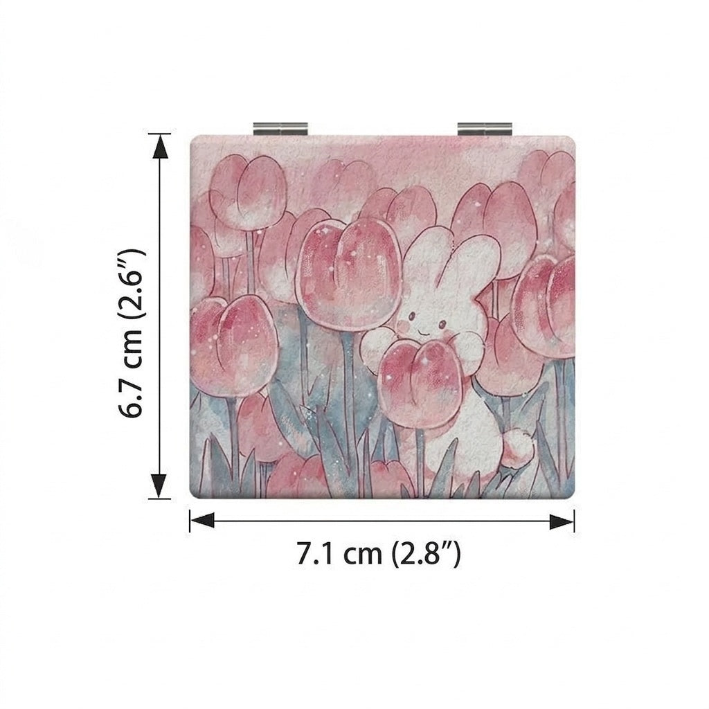 This bunny folding pocket mirror is the perfect everyday essential with a soft, dreamy design. Featuring a sweet bunny illustration among pastel flowers, it adds a gentle, cozy touch to your bag.